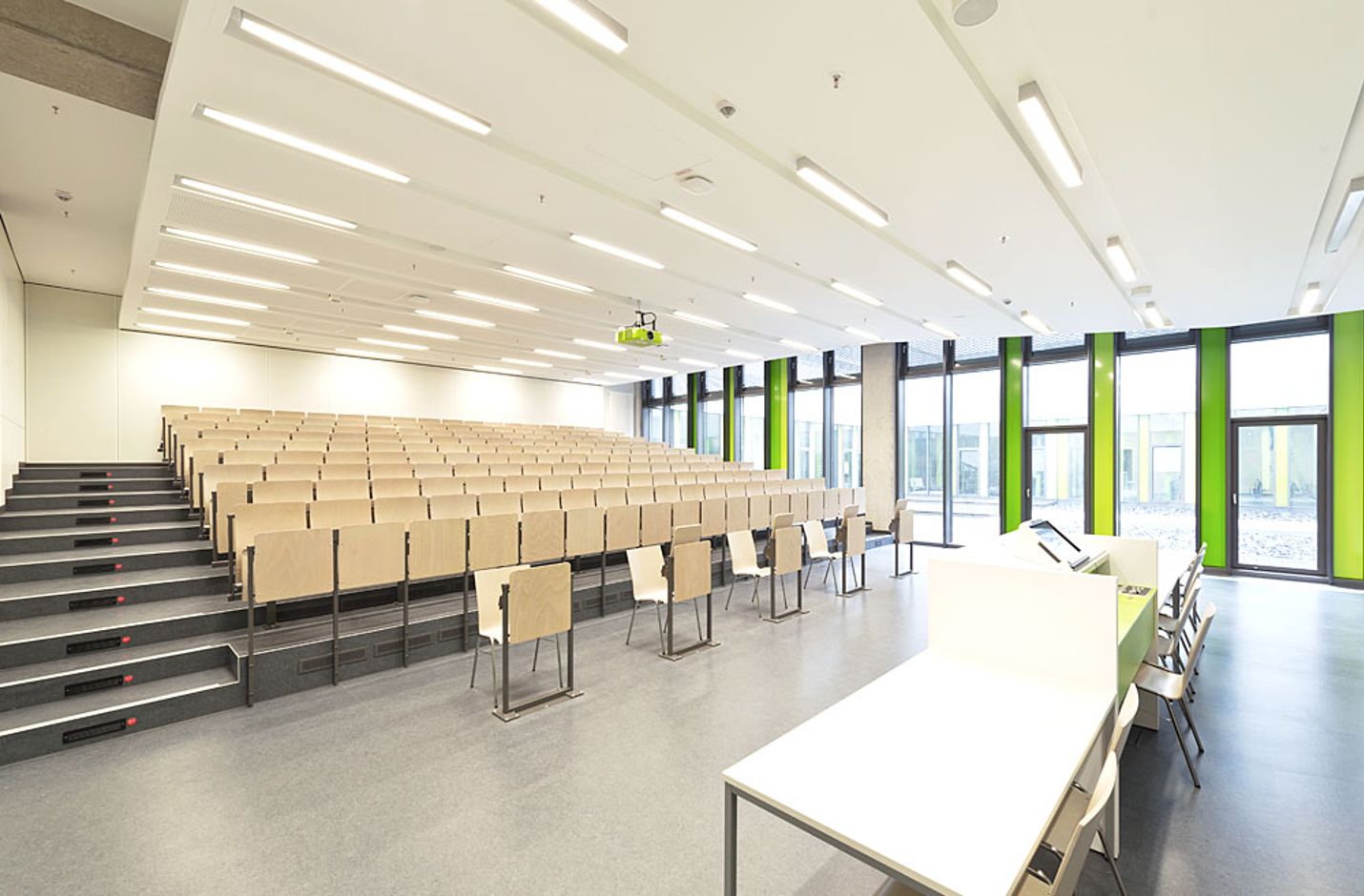 Unsere Module und Systeme bieten neben einer hohen thermischen Leistung und vielseitigen Installationsmöglichkeiten auch gute akustische Eigenschaften – nicht ganz unwichtig, wenn es darum geht, dem Unterricht zu folgen. Die Hybridsysteme bieten noch ein Effizienzplus: Durch die Einbeziehung der Gebäudemasse über die Betondecke kann die Massenspeicherleistung noch weiter gesteigert werden. Damit lassen sich Betriebskosten und CO2-Ausstoß erheblich senken.