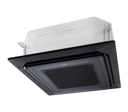 Thomas Girschner: Die Decke ist in schwarz-grauer Farbe gestrichen und die Gestalter haben mit sehr vielen Lichtelementen gearbeitet. Die Kassetten, die wir integriert haben, sollten im Raum unsichtbar wirken. Durch die matte schwarze Blende sind sie für die Kunden fast nicht zu sehen, der Fokus liegt ganz klar auf der Auslegeware. Die Luftverteilung war wie erwähnt ein wichtiger Punkt. Die Kassetten mit dem 360° „Rundumausblas“ sorgen dafür, dass die austretende Luft auf eine möglichst große Fläche verteilt wird, was wiederum die Zugerscheinung auf ein Minimum reduziert. Zudem stimmte hier einfach bei den schwarzen Deckenkassetten mit 360° Ausblas von Fujitsu das Preis-/ Leitungsverhältnis.