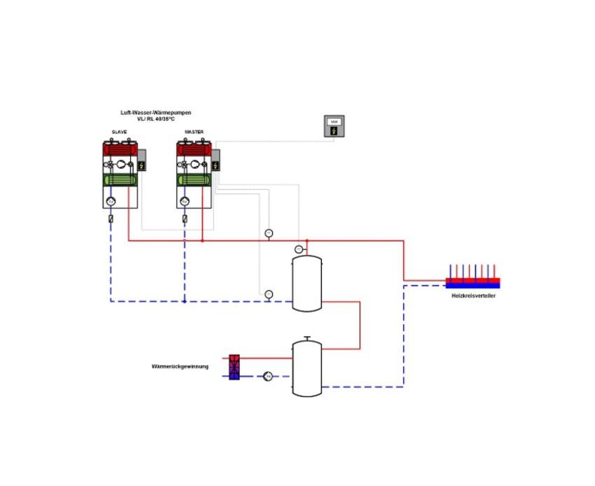 Die bestehende Anlage für den 1.400 m2 großen Supermarkt verfügte über keine Spitzenlastabdeckung – die Abwärme reichte aus, um den Markt während der Heizperiode ausreichend zu heizen, doch es entstanden Engpässe in der Wärmeversorgung, wenn die Wärmerückgewinnungsleistung unzureichend oder nicht vorhanden war. Auch die Klimatisierung der Verkaufsfläche über die Verbundanlage der Gewerbekälte entsprach nicht ganz den Anforderungen. Die Aufgabe bestand also darin, die Betriebssicherheit zu steigern, indem die entstehende Abwärme aus der Gewerbekälteerzeugung für die Gebäudeheizung und Brauchwassererwärmung genutzt und durch die Implementierung eines Wärmerückgewinnungssystems weitere Einsparpotentiale gehoben wurden. Dabei sollte der Umbau des vorhandenen hydraulischen Systems möglichst gering sein; der Pufferspeicher für Warm- oder Kaltwasser sollte weiterverwendet werden.
