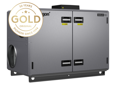Die Raumklimalösung für das Gemeindezentrum wurde mit vier GOLD-Lüftungsgeräten in leicht unterschiedlichen Ausführungen ausgelegt. Die RLT-Geräte sind mit Wärmetauschern ausgestattet, die eine energieeffiziente Nutzung der Wärme oder Kälte der durch das Gerät strömenden Luft gewährleisten. Das bedeutet, dass das Lüftungsgerät die Zuluft entweder erwärmen oder kühlen kann.