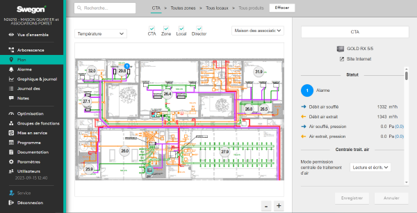 WISE überprüft und regelt das Innenraumklima auf der Grundlage einer Vielzahl von Sensordaten, darunter Temperatur, Luftqualität, Luftfeuchtigkeit und Belegung. Das System regelt im Wesentlichen alle Elemente eines Klimasystems, von Lüftungsgeräten bis hin zu Klimaprodukten. Darüber hinaus kann WISE die Wasser- und Luftoptimierung regeln, um ein angenehmes und nachhaltiges Raumklima zu gewährleisten.