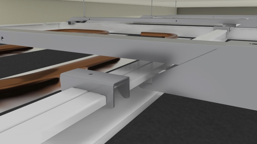 Dank des durchdachten Designs können Deckenplatten beliebig positioniert und wiederverwendet werden – ohne spezielle Abkantungen oder Ausklinkungen. Das ermöglicht eine einfache Anpassung der Deckensegel, auch nachträglich, ohne dass neue Platten benötigt werden.