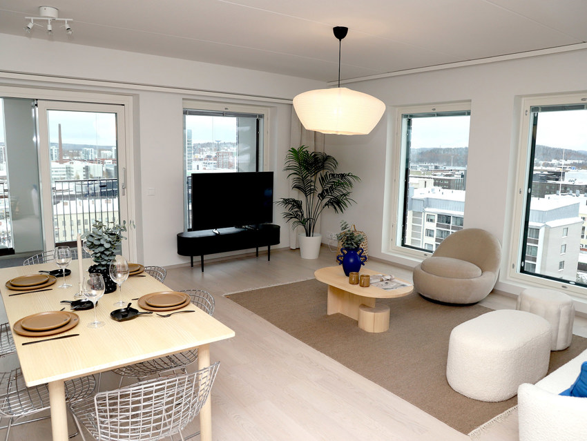 Puistolan Torniin valmistuu yhteensä 84 A-energialuokkaan kuuluvaa asuntoa, ja koteja pääsee sisustamaan ensi kesäkuussa.