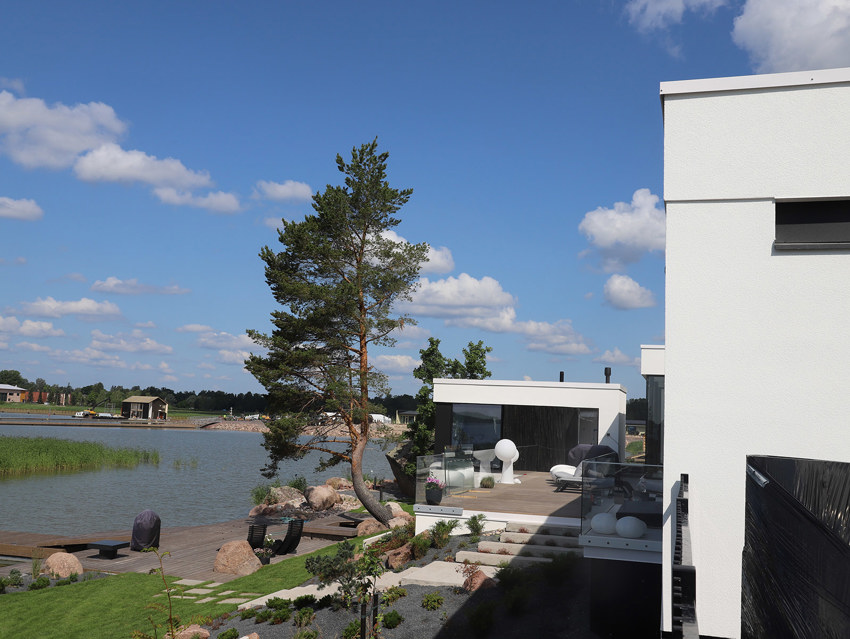 - Ihastuimme kuitenkin mahdollisuuteen, että pääsisimme rakentamaan tällaiselle paikalle, messujen halutuimmalle tontille. Paikka sijaitsee pikkukaupungin ytimessä meren rannalla, on luonnonsuojelualueessa kiinni ja tässä sai vielä rakentaa aivan rantaan. Vastaavia tontteja ei Suomessa ole missään muualla.