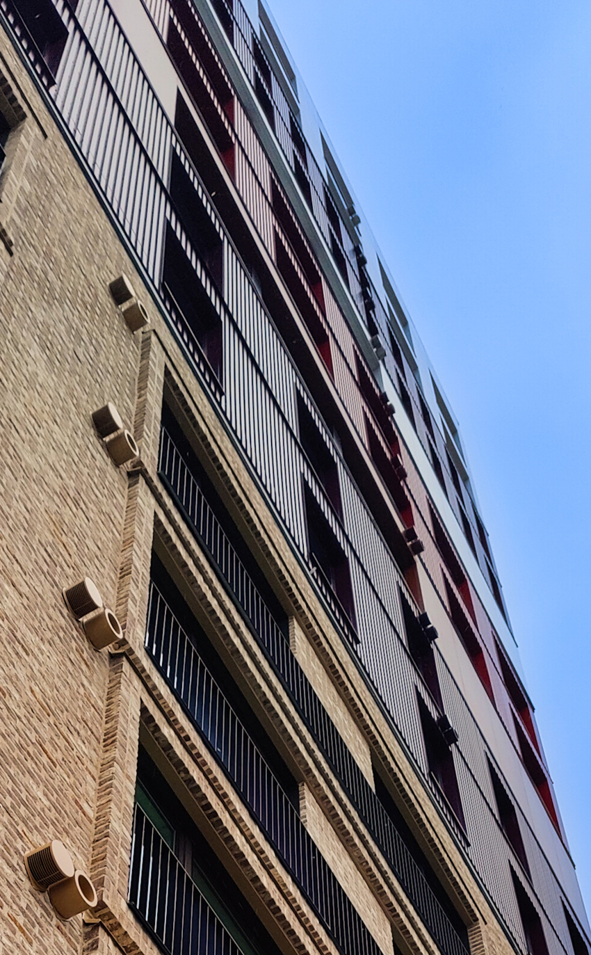 ”Seinäpuhallusratkaisun ansiosta ei tarvita pystyhormeja eikä erillistä konehuonetta. Varsinkin tällaisessa korkeassa tornitalossa se säästää arvokkaita neliötä asunnoille".