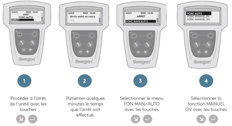 Via la télécommande « MAIN HAND-HELD » (référence 322452201), procéder à un arrêt de l’unité GOLD RX.