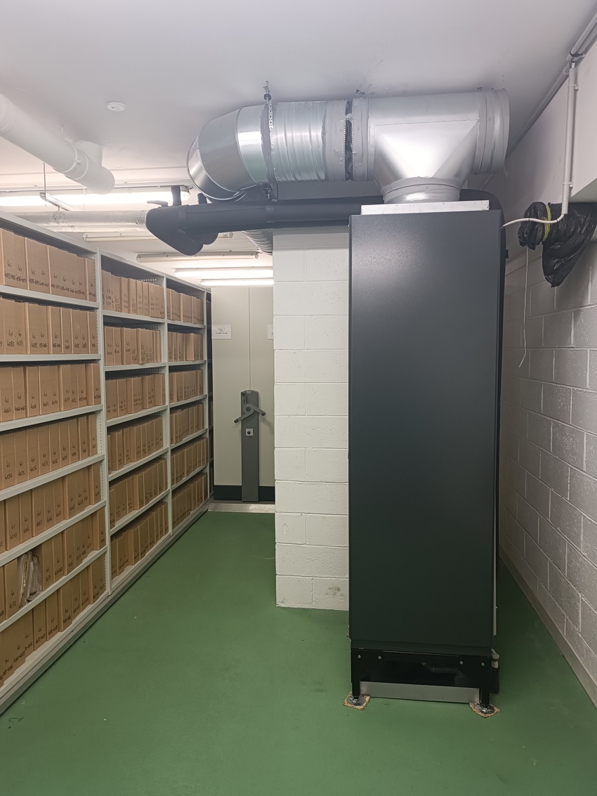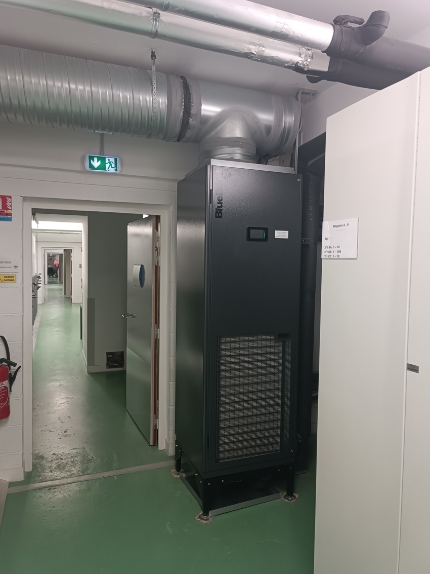 Afin de contrôler l'environnement climatique du Pôle culturel Grammont, un total de 28 armoires de précision ont été installées pour les réserves et des espaces dédiés: