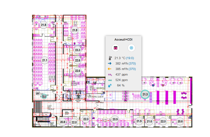 Le système WISE ajuste en temps réel le fonctionnement des équipements CVC en fonction des besoins réels et des conditions extérieures, permettant de réduire les consommations énergétiques tout en assurant un confort optimal. Il s’intègre en outre sans difficulté à des produits tiers, garantissant une régulation homogène et efficace de l’ensemble du bâtiment.