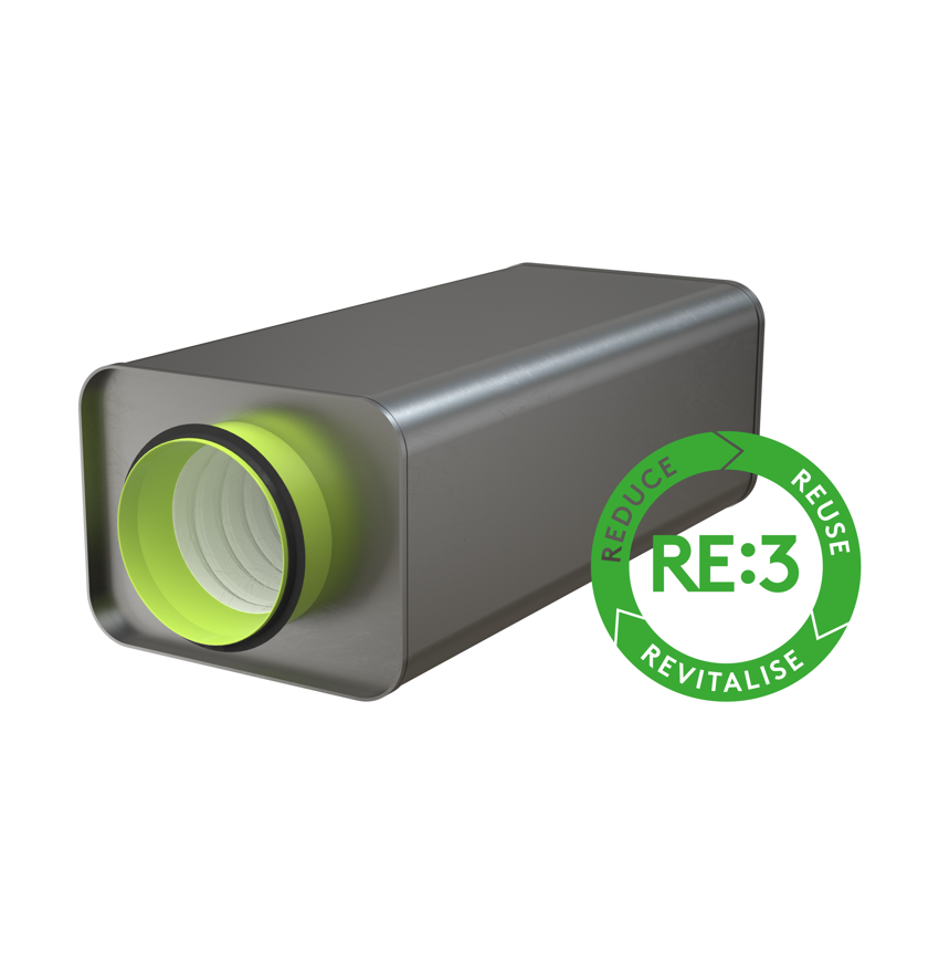RE:3 er et Swegon-konsept, som er basert på de viktigste prinsippene for sirkularitet, og som består av RE:duce, RE:use og RE:vitalise. Denne unike tilnærmingen skal bidra vesentlig til bransjen og forenkle for et bredt publikum, slik at de kan ta bevisste og langsiktige beslutninger når det gjelder reduserte karbonnivåer i bygninger. En RE:3-løsning er et alternativ til de konvensjonelle produktene, systemene og tjenestene våre, et alternativ som er redusert, gjenbrukt eller revitalisert. Vi garanterer et betydelig lavere nivå av bundet CO2 og har gitt disse løsningene RE:3-symbolet vårt.