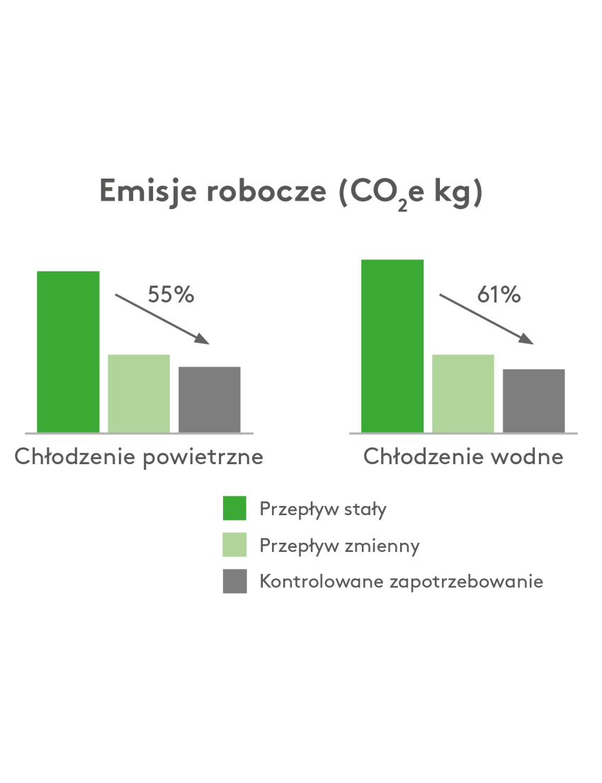 Mniejsze zużycie energii oznacza również mniejszy ślad klimatyczny. Dzięki rozwiązaniu kontrolowanemu popytem emisja CO2 może zostać zmniejszona nawet o 61%, co czyni ją skutecznym sposobem na przyczynienie się do bardziej zrównoważonej przyszłości.