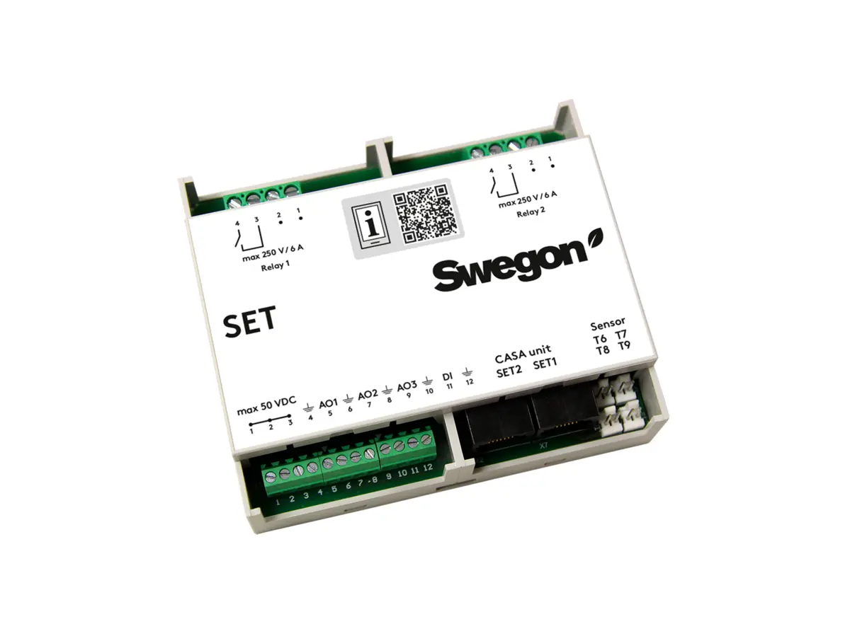 • Permits straightforward installation and control of external accessories from one Swegon CASA ventilation unit