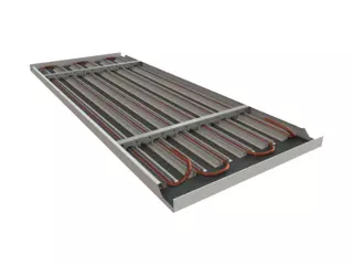 The SPECTRA M-C radiant ceiling is a water-based radiant ceiling system with high thermal and advanced acoustic effectiveness. The magnetic connection of the activation coil and ceiling panel allows both components to be prefabricated concurrently and delivered separately to the construction site for assembly there. As a result, the manufacturing time for the ceiling as a whole is significantly reduced.