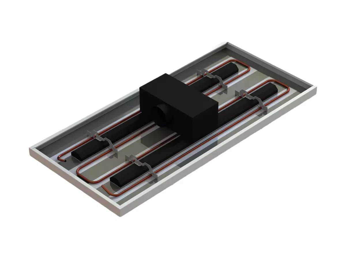 AQUILO + the A11 or SPECTRA M radiant ceiling system are highly efficient radiant ceiling systems with integrated supply air and superior acoustic effectiveness. The AQUILO hybrid system delivers highly effective ventilation results. At the same time, the supply air jet on the back of the ceiling panel increases the convective capacity, which supports the heating and cooling effect in the room without a risk of draughts.