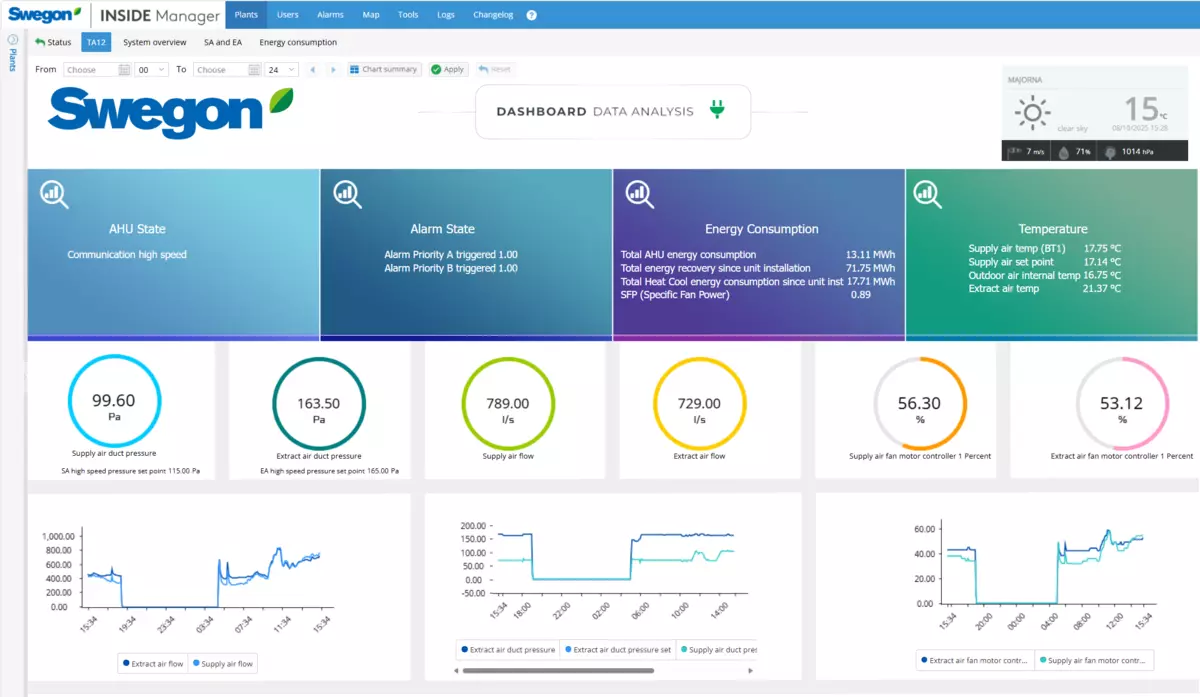 - Access to your plant on the go via the Swegon INSIDE Manager App (iOS & Android)
