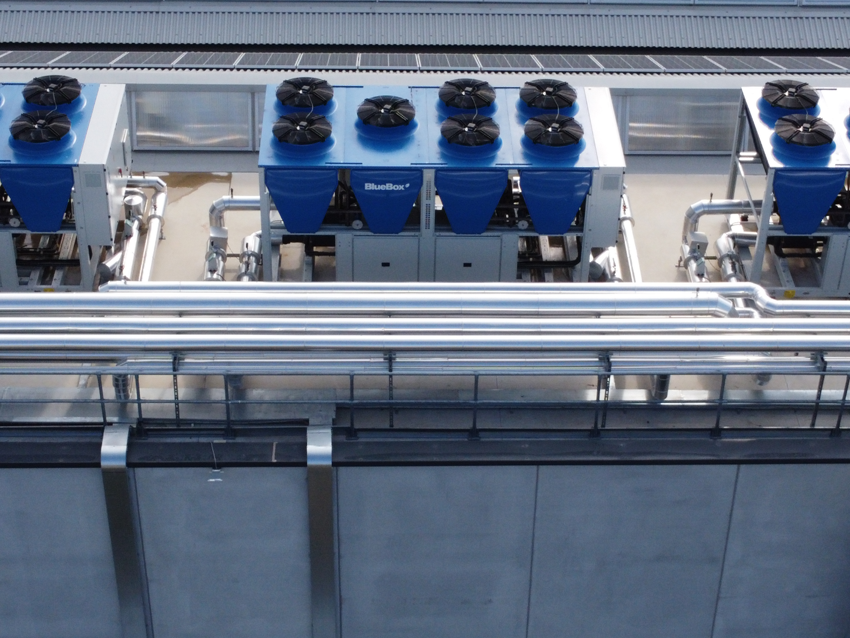 At the start of the project it was decided that a modern, sustainable and efficient air conditioning system that could serve both production and offices should be chosen. Today the plant features 3 parallel BlueBox Tetris 2A heat pumps for 1,2 MW heating and cooling capacity, all using low GWP refrigerant gas below 500. There are also 8 GOLD air handling units with integrated high efficiency energy recovery systems that has been certified to be leak-free. That means that there is no leakage between input air and output air, further ensuring a comfortable and healthy indoor environment.