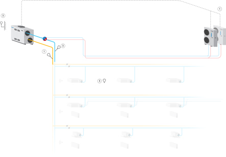 • When combining this solution with a VAV/DCV system (pressure-controlled GOLD), minimum airflow demand for the chiller/heatpump to work properly must be respected (see manual below).