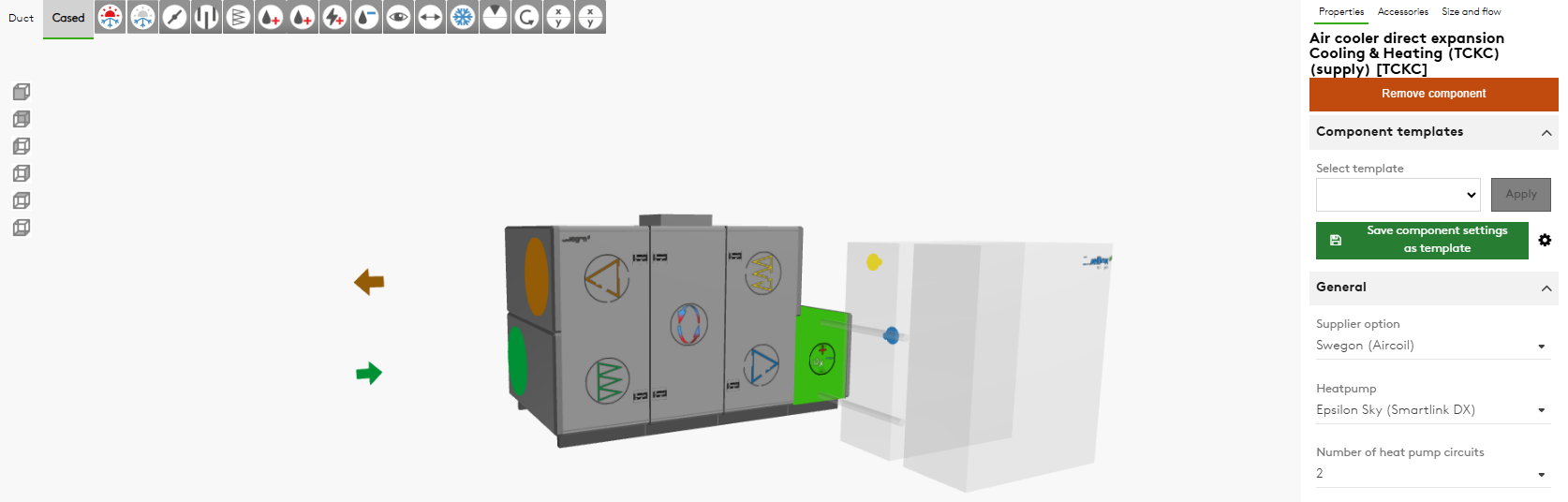 • The heatpumps should be of the same size and the coil must be divided accordingly. The program supports that.