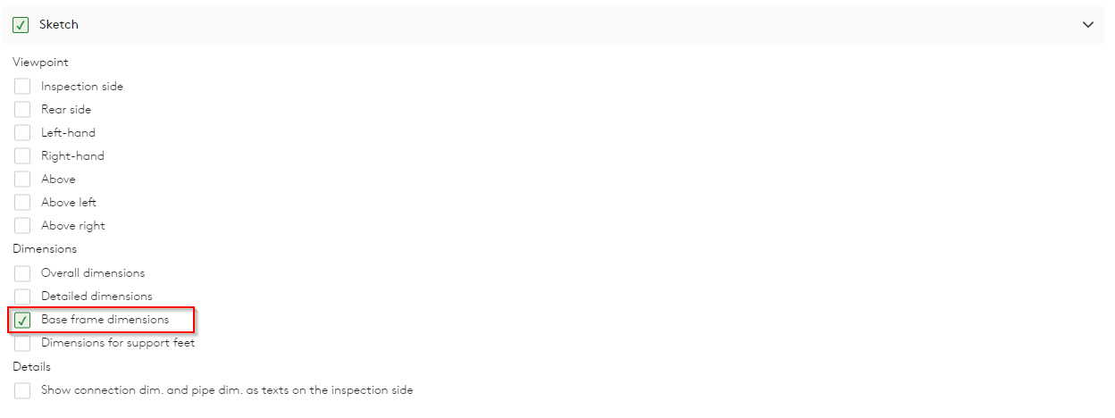 Improvement: Baseframe dimension printout for GLOBAL/ESENSA(27645)