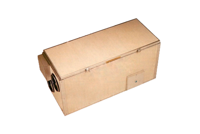 Ett FTX-aggregat med korsströmsvärmeväxlare som placerades på vinden. Systemet var vanligt i villor på 1980- och 90-talet.