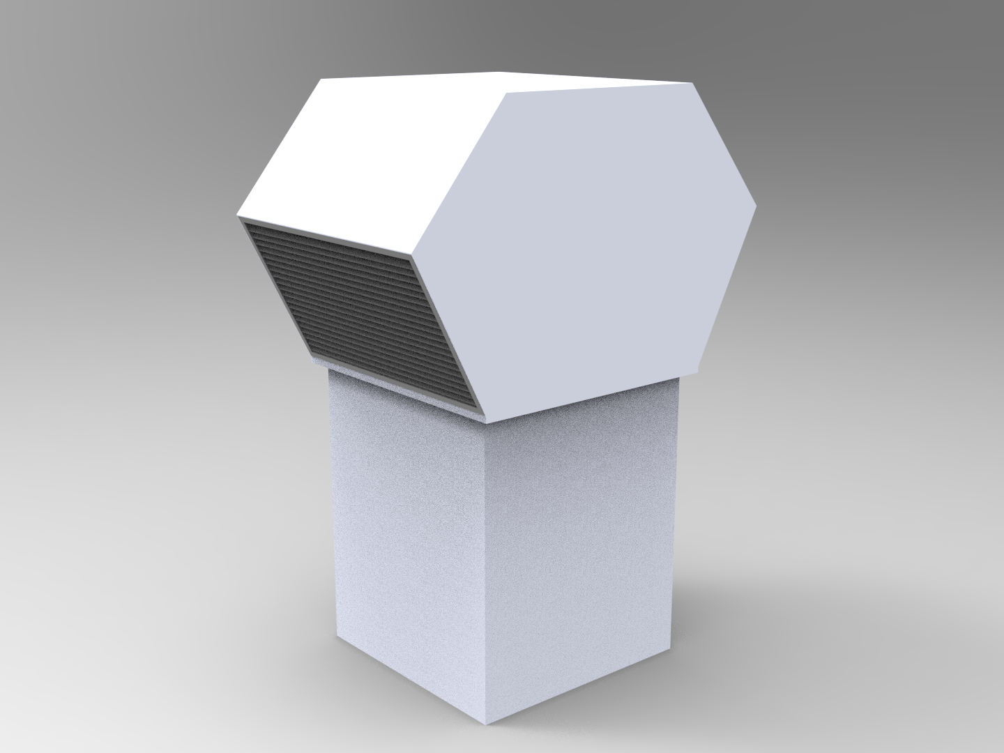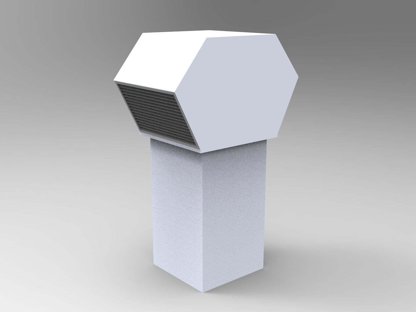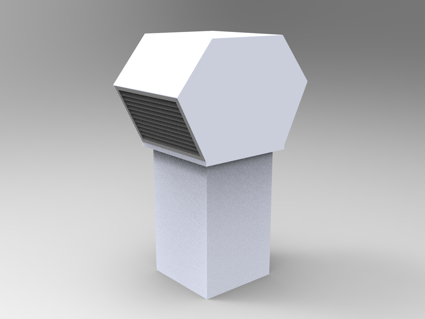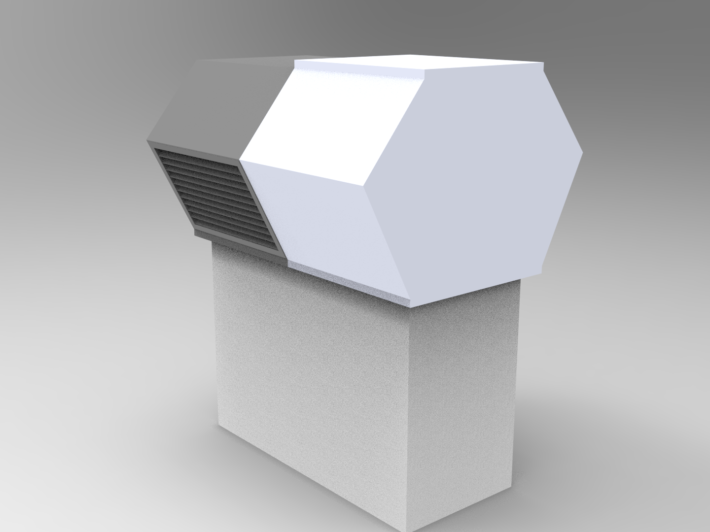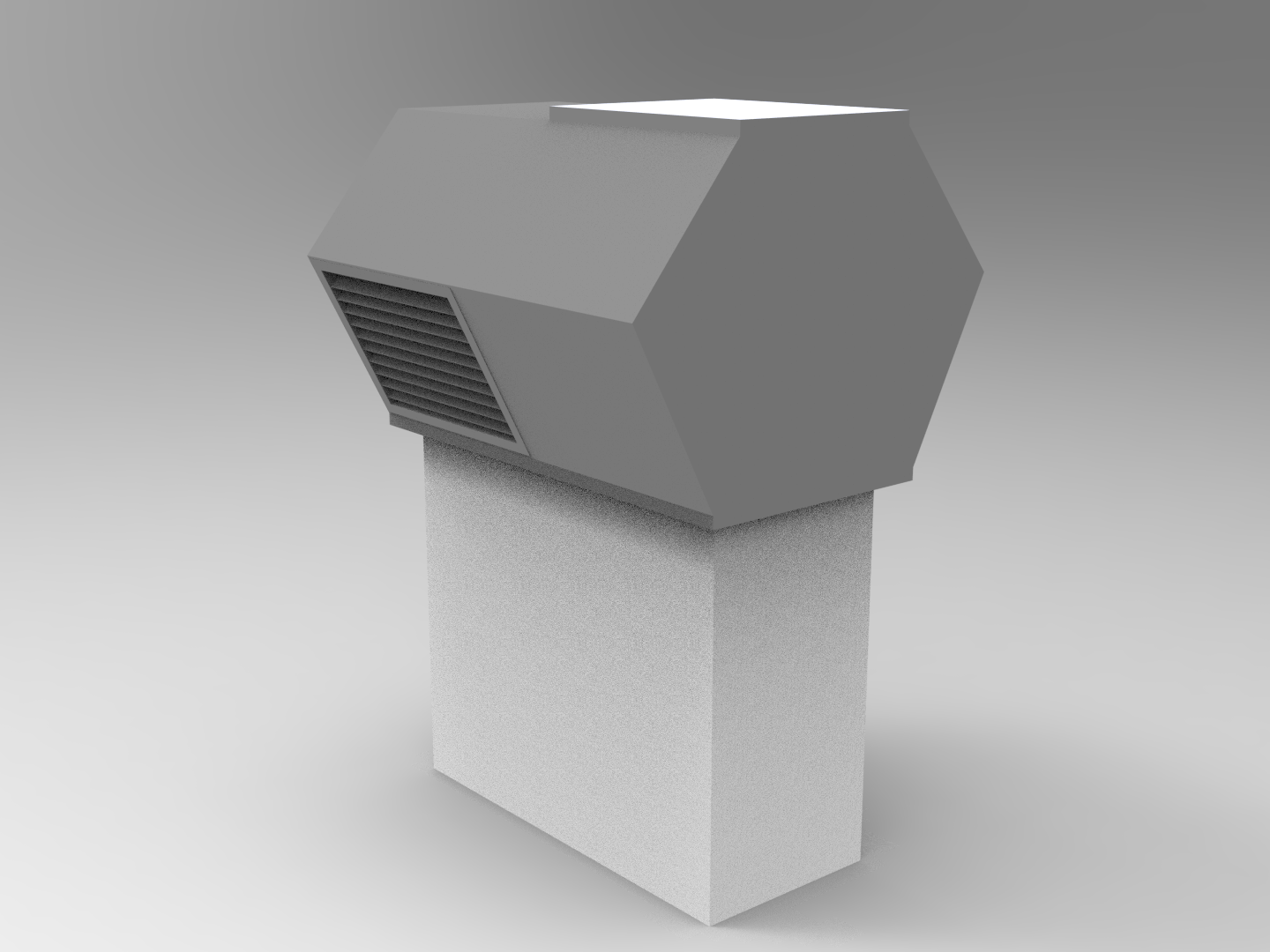 En rektangulär takhuv för större flöden som hanterar 2x uteluft eller 2x avluft beroende på modell.