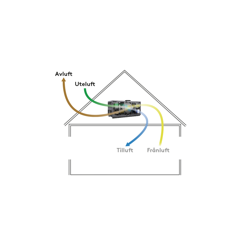 Avluft – Använd inomhusluft som släpps ut i det fria (som före luftbehandlingsaggregat kallas frånluft).