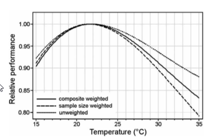 Det har gjorts mängder av olika studier för att kvantifiera samband mellan operativ temperatur och produktivitet. Det är dock svårt att utforma bra metoder för att utföra denna typ av tester. En av de mer refererade studierna på sambandet mellan luftens temperatur och prestationsförmåga visar att i genomsnitt så ökar prestationsförmågan vid kontorsarbete med temperaturen upp till 21-22°C, för att sedan minska med ca 2% per grad temperaturökning. Ref. (Seppänen et al. 2006)