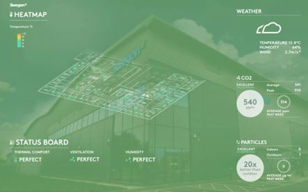 AMF Fastigheter har valt att använda sig av Swegons digitala tjänster INSIDE Analytics och INSIDE Visualiser, som med hjälp av AI analyserar inomhusklimatdata från givare runtom på kontoret och sedan presenterar en överblick över inomhusmiljökvaliteten på utplacerade skärmar på kontoret.